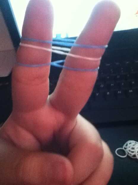 Paso 1: Qué necesidad de U Bandas de goma y clip de s o cPaso 2: Poner bandas de goma en los dedos Poner las gomas en como en una espina de pescadoPaso 3: Colocación de los Hacer lo sería en un bucle de espina de pescado la parte inferior subir encim