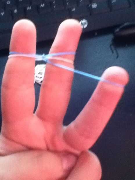 Paso 1: Qué necesidad de U Bandas de goma y clip de s o cPaso 2: Poner bandas de goma en los dedos Poner las gomas en como en una espina de pescadoPaso 3: Colocación de los Hacer lo sería en un bucle de espina de pescado la parte inferior subir encim