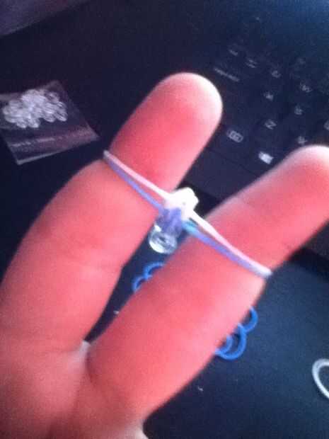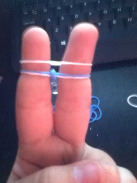este es mi primer insuperable así que por favor comentario y dígame de lo trabajadoPaso 1: Cómo hacer una pulsera de goma sin telar Artículos:Bandas de gomaClip de S o CGanchoPaso 2: Poner una goma en el dedo y girar como un ocho entonces puso dos má