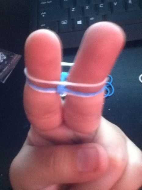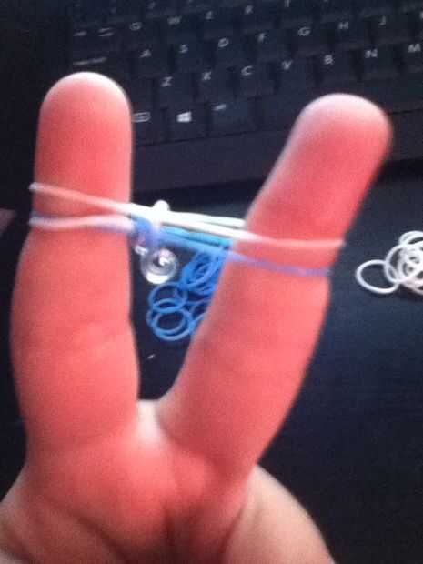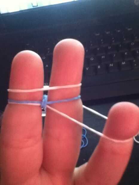 Paso 1: Qué necesidad de U Bandas de goma y clip de s o cPaso 2: Poner bandas de goma en los dedos Poner las gomas en como en una espina de pescadoPaso 3: Colocación de los Hacer lo sería en un bucle de espina de pescado la parte inferior subir encim