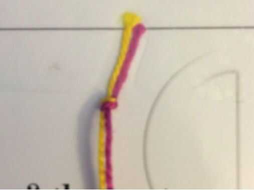 -2 pedazos de hilo de bordar en diferentes colores pero son de igual longitud. Las haría sobre un brazo cada uno si quiere hacer la pulsera de la final, pero si sólo quieres practicar, puedes hacerlo más corto.