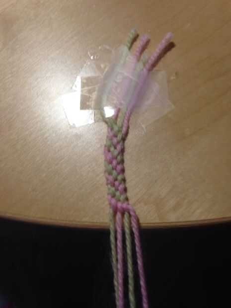 una pulsera bastante sencillo que sólo requiere 1 nudo.  Utilicé 4 colores (1 azul, rojo 2, naranja 3, amarillo 4) pero se puede elegir en cualquier lugar entre 3-8 colores.Materiales que necesitas:-Cadena (a veces llamada seda en tiendas de artesaní