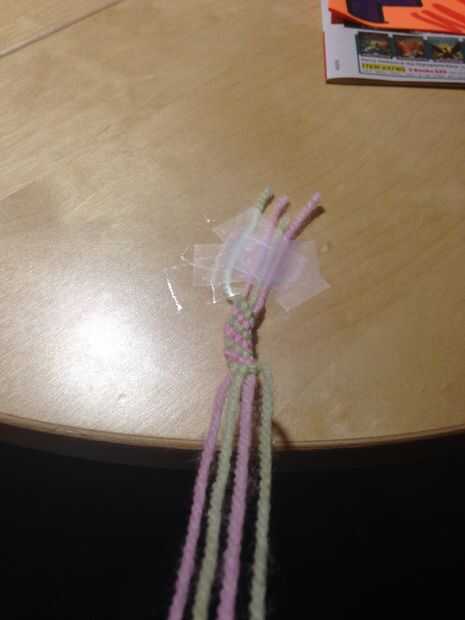 una pulsera bastante sencillo que sólo requiere 1 nudo. Utilicé 4 colores (1 azul, rojo 2, naranja 3, amarillo 4) pero se puede elegir en cualquier lugar entre 3-8 colores.Materiales que necesitas:-Cadena (a veces llamada seda en tiendas de artesaní