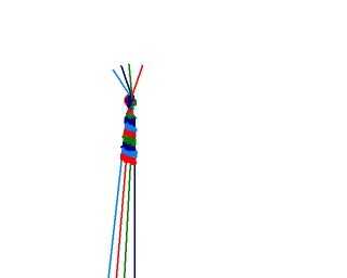 una pulsera bastante sencillo que sólo requiere 1 nudo.  Utilicé 4 colores (1 azul, rojo 2, naranja 3, amarillo 4) pero se puede elegir en cualquier lugar entre 3-8 colores.Materiales que necesitas:-Cadena (a veces llamada seda en tiendas de artesaní