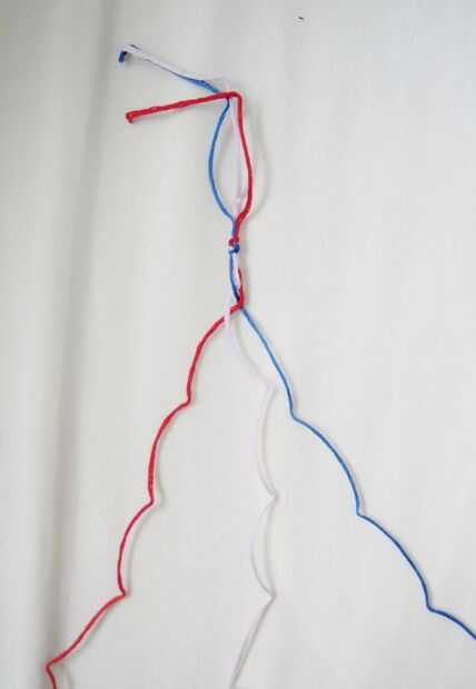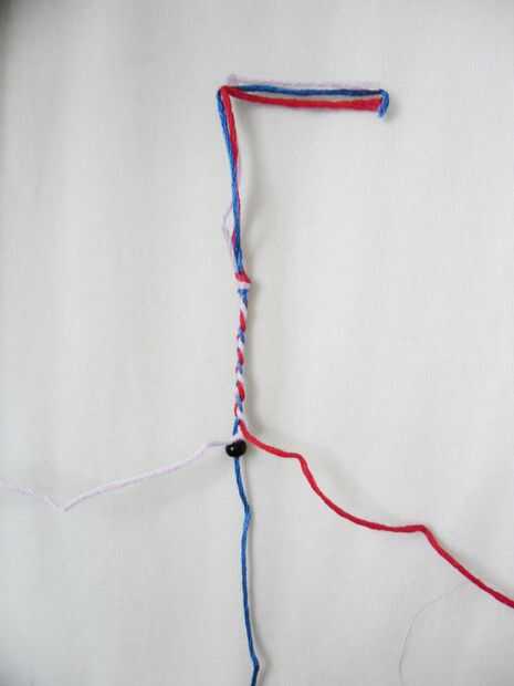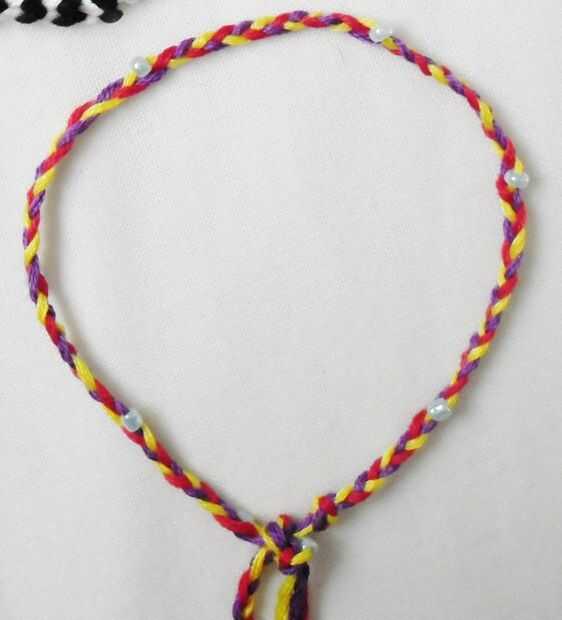 Esta es una de las pulseras más fácil para hacer. Se necesita 3 cuerdas de colores diferentes. Atarlos juntos unos 4-5cm (2 pulgadas) de la parte superior. Separar hacia fuera como se muestra en la imagen. Tome la cadena a la derecha y llevarlo por lo que es en el medio. Ahora toma la cadena a la izquierda y llevarlo por lo que es en el medio. Hacer lo mismo con la cadena que está ahora a la derecha. Repetir 4-5 cm (2 pulgadas) del extremo. Ate de aquí. Si desea añadir granos, diapositiva en color a intervalos regulares. Después de que has resbalado en, continuar lo trenzado.