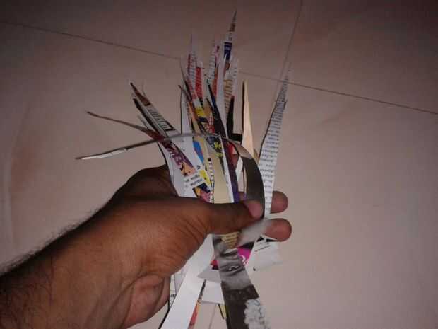 Para hacer bolas de papel a prueba de agua y brillante aplicar barniz.