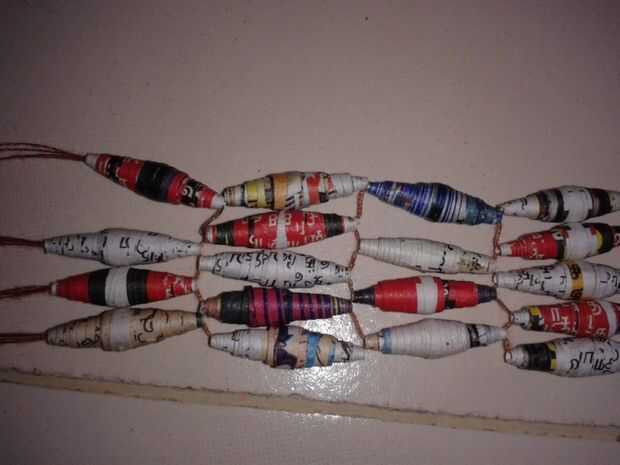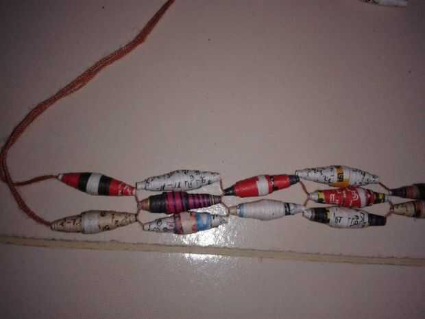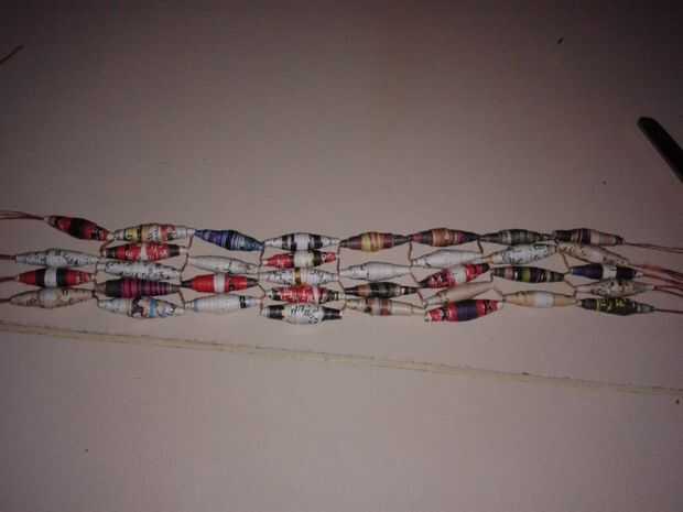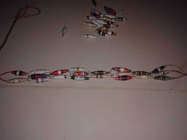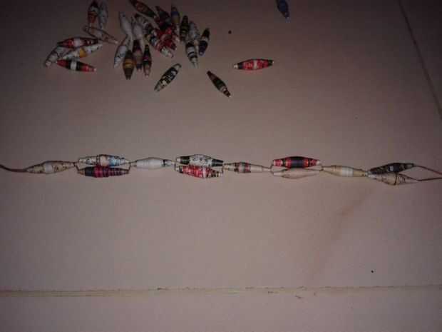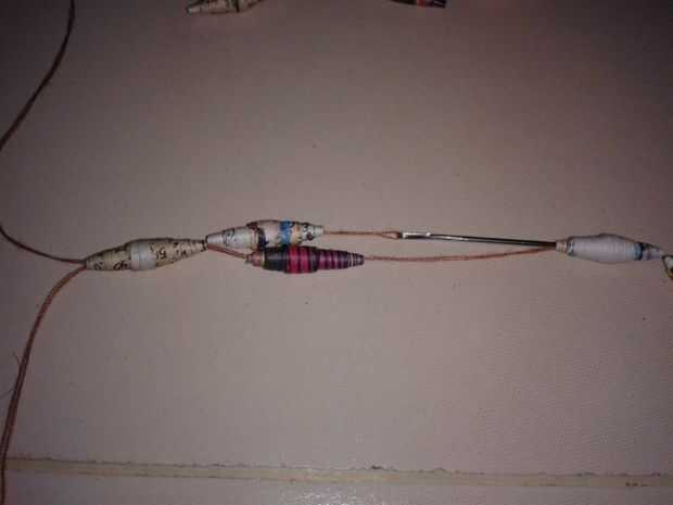 1) mi cadena de fibra es muy duro y así cambiar el hilo para este diseño. Debido a usar el hilo de una aguja de coser pequeñas es necesario para unir los granos.