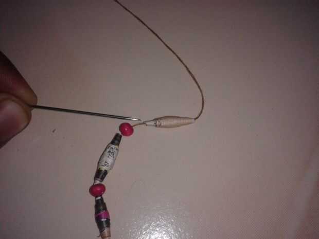 7) Repita el paso 5 y 6 hasta la longitud que queramos. Este diseño necesita más cuentas de papel.