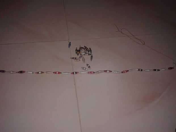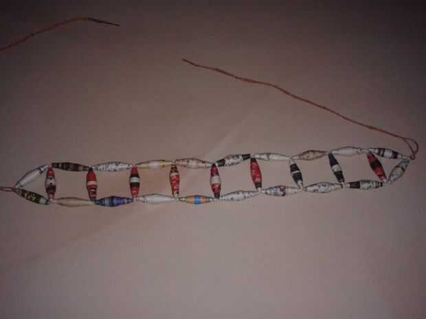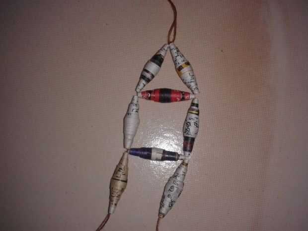 3) como diseño anterior mismo que hacer aquí. A pesar de la utilización de cuentas de madera usamos bolas de papel.