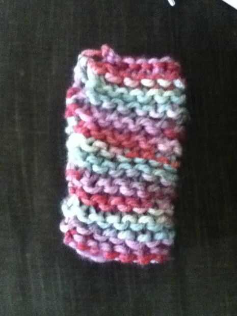 Una vez que has hecho 24 filas atan apagado, luego tejer en los extremos con su aguja de hilo. Luego coser los lados juntos, pero dejar un agujero en la parte superior abierta para el pulgar. Ahora hacer otro!