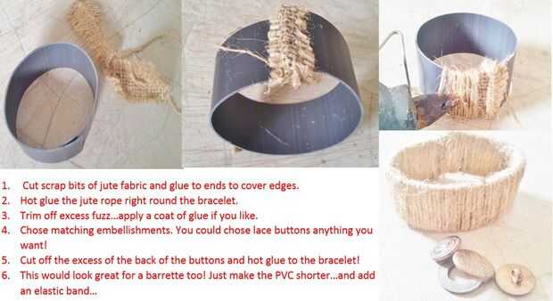 pegamento caliente ahora el derecho de la cuerda del yute alrededor de la pulsera.