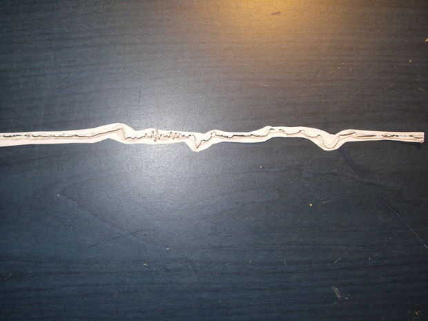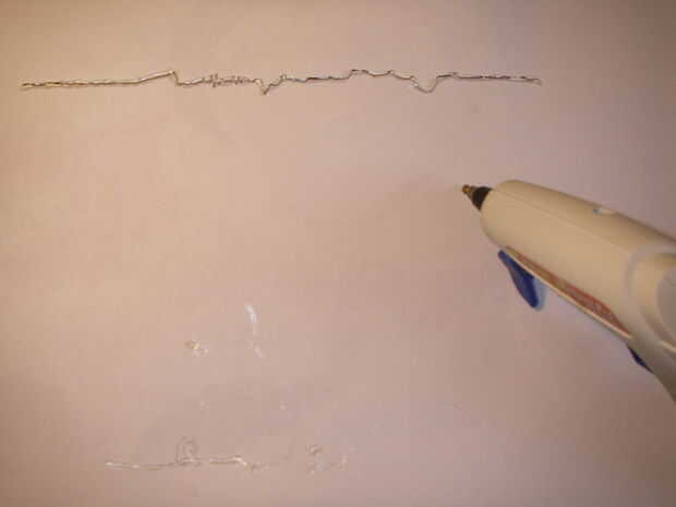 Después de que el pegamento esté seco, moje el papel en agua y con cuidado quitar el pegamento caliente del papel. Si usted quiere una frontera de la onda de sonido, puede cortar alrededor de la onda y dejar un borde.