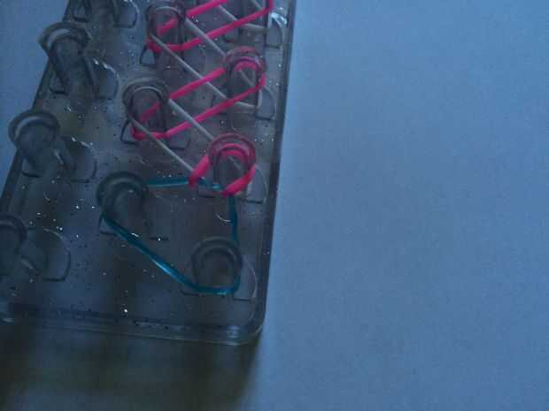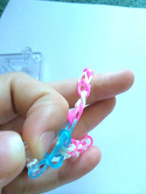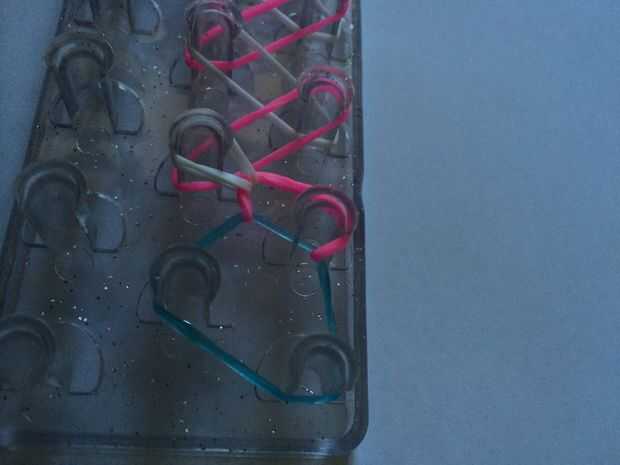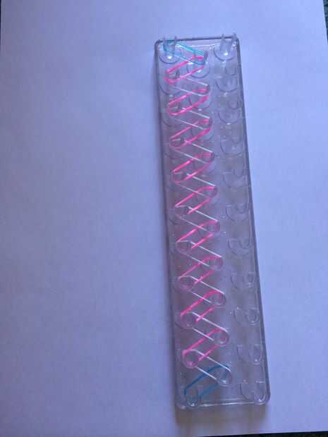 tomar tú telar y colóquela frente a usted para que el lado curvo de las clavijas es más cercano a usted. Coloque una venda diagonalmente a través de dos publicaciones, luego hacer lo mismo en la dirección opuesta de la espiga que el último grupo se estira sobre (ver fotos) continuar haciendo esto hasta el final de su telar. su telar alrededor y que engancha. tomar la segunda banda tire a través de la primera y gancho alrededor del perno de origen, lo mismo para el resto (2 al 3 etc.). al llegar el tirón final del soporte del telar excepto la última banda que engancha. Coloque la primera banda ("PAC") en un lado del clip S y tire la última banda de telar y cuidadosamente saque el clip y 1 mal por los dos lazos, tire hacia atrás el clip de S a la segunda banda en la cadena y clip a través de los dos lazos en un lado de la banda dos! Voila!