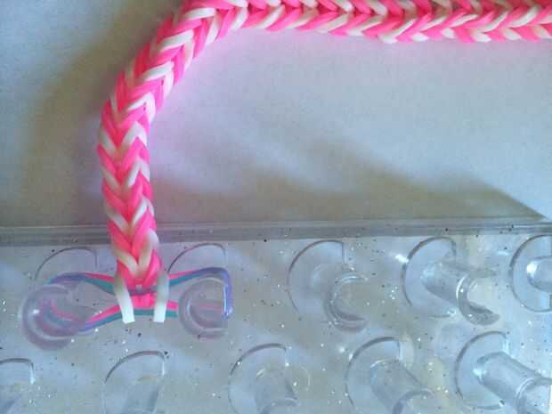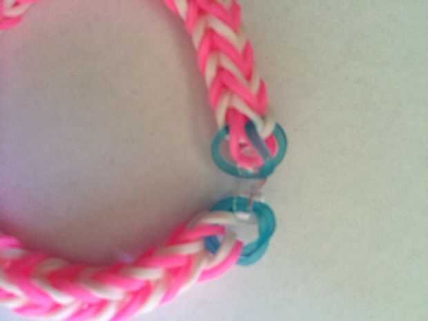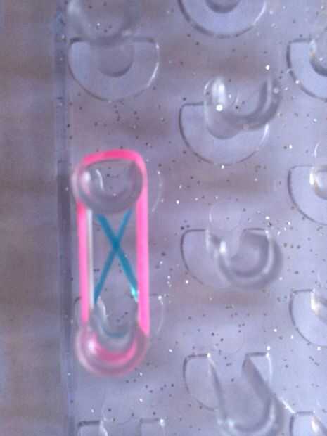 primer puesto una banda en dos alfileres en forma de ocho (8), luego poner otro dos bandas en la parte superior (no trenzado), tire de la banda inferior sobre las dos bandas superiores (un lado en un momento), luego poner otra banda no torcido en la parte superior y tire de la banda inferior. Repita hasta que el soporte ajusta a tu muñeca! luego tomar el gancho y las bandas que siguen en su telar en su anzuelo, poner los cuatro extremos de la banda a través del clip S y conecte el otro extremo del gancho! Voila! Disfruta de tus dos nuevas pulseras! más tutoriales de telar para venir!!!!