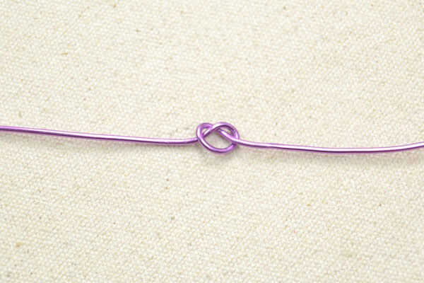 Corte una longitud de alambre de aluminio púrpura a aproximadamente 23 ~ 25 cm. encontrar la ubicación del centro y atar un nudo. Apriete el nudo de alambre ligeramente con los dedos y pinzas.