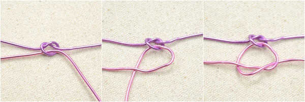 El nudo decorativo básico para hacer la pulsera-nudo de conexión doble