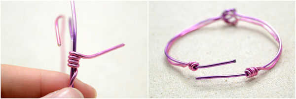 Envuelva el final alambre de 3cm color rosa (o morado) alrededor del violeta (o rosa).