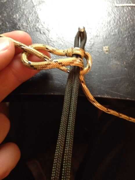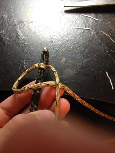 realmente no hay una explicación, sólo una pulsera paracord con 2 tipos de paracord. que yo sepa, soy el primero en pensar en esto.Paso 1: doblar el paracord y colócala en el orificio y los otros dos hilos, es muy difícil de explicar - así que lo sie