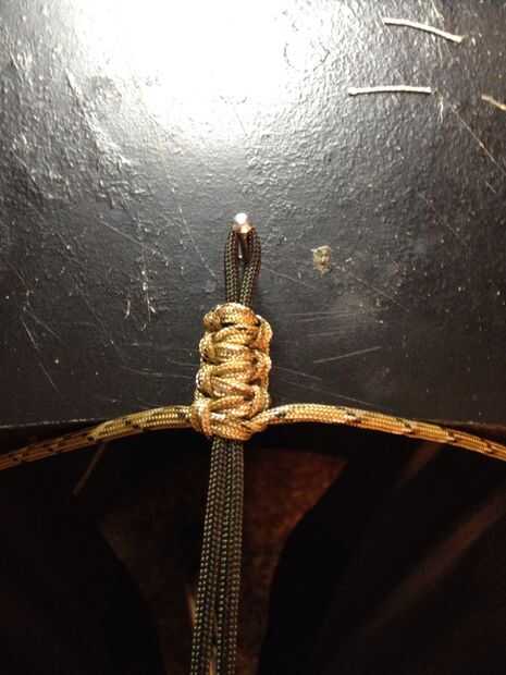 realmente no hay una explicación, sólo una pulsera paracord con 2 tipos de paracord. que yo sepa, soy el primero en pensar en esto.Paso 1: doblar el paracord y colócala en el orificio y los otros dos hilos, es muy difícil de explicar - así que lo sie