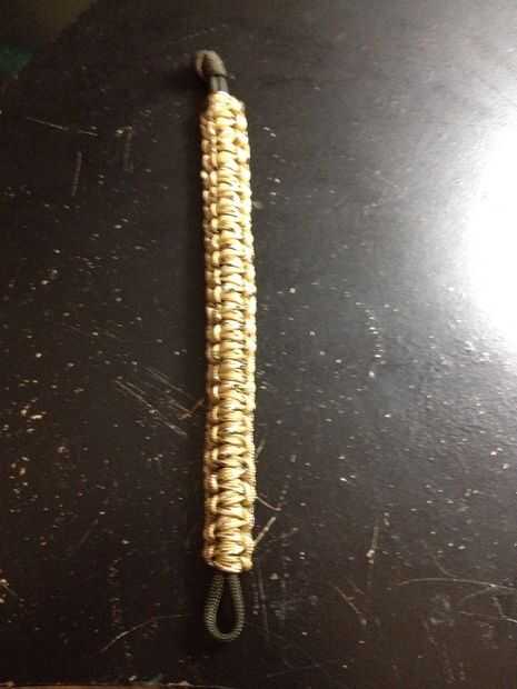 Se trata de un brazalete de paracord ajustable que se deslice en la mano y apriete para arriba. Mi hijo aprendió cómo atar pulseras de nudo Salomón usando clips de hebilla lado hace algún tiempo. Pero cuando una escasez de clip tuvo que adaptarse. Es
