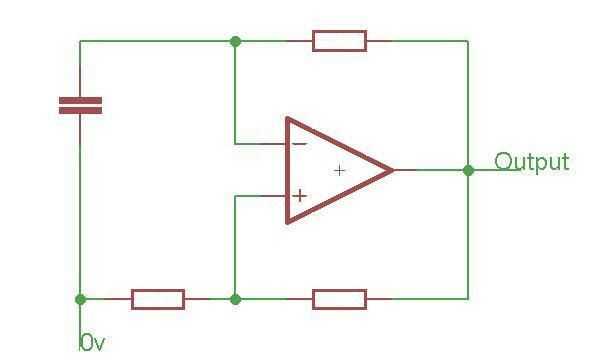 El condensador C1 carga y descarga a través del resistor R1 y el tiempo necesario para que este ciclo se producen es el período de la onda.