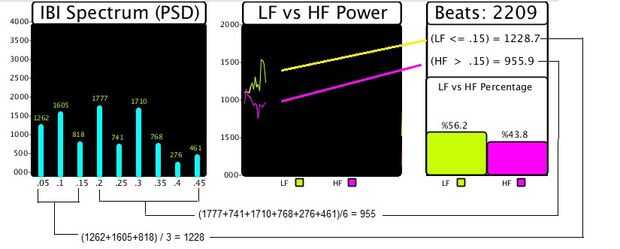 La aplicación de Arduino pulso Sensor Cardio gráfico ilustra corazón beat información en forma gráfica. La aplicación muestra gráficos de variación de ritmo cardíaco diferente: latidos por minuto (BPM), intervalos Interbeat (IBI), frecuencia cardiaca frecuencia (Hz), densidad espectral Potencia (PSD), LF vs HF (frecuencias de baja vs alta frecuencia). Un Fast Fourier transforma se utiliza para determinar el espectro de energía de un conjunto de datos de latidos del corazón. Aquí está una video introducción describiendo la aplicación.