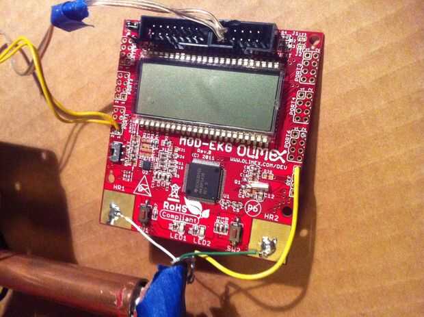El equipo de PotC decidió basar el proyecto en la Junta de desarrollo de "Olimex MOD-EKG". Es una placa de desarrollo económico que se basa en un diseño de Texas Instruments que fue desarrollado como un ejemplo de aplicación para su microcontrolador MSP430. La Junta dev utiliza el construido en op-amp del MSP430 para acondicionar la señal y realiza filtrado de la señal para reducir la interferencia de señales digital.