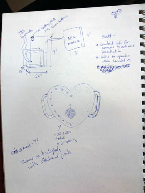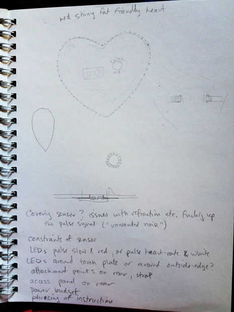 Inmediatamente de un "gordo, agradable, brillante corazón rojo" como una forma de la base. Que corresponde bien con el concepto que estábamos trabajando con el latido del corazón, y fomenta la interacción si no parece demasiado oscuro o industrial. Sigo, sin embargo, más orgulloso de la idea de poner manijas a los lados, con los sensores de pulso. Asas son una invitación súper clara, sin palabras, para tomar en!