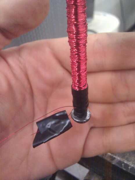 Cuando termine, intento volver con el mismo fin donde comenzó y cinta aislante más para el extremo conectado a la bobina de cinta. Dejar un montón de alambre extra colgando y cortar del carrete. Si ejecuta actual desde un electrodo a otro ahora, debe sentirse fácilmente el magnetismo!