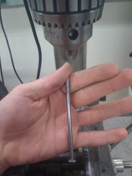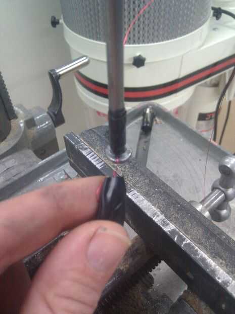 Jam el extremo afilado de la uña en un drillpress (o handdrill, si eso es todo lo que tiene). Apriete firmemente la uña en su lugar. Establecer su taladro para girar como lentamente como sea posible (a menos que seas realmente bueno).