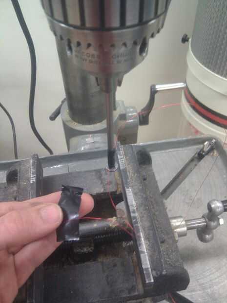 Con uno de lo alambre conectado firmemente a la uña y el carrete en las manos, encender el taladro.