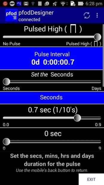 En esta pantalla que puede deslizar el conjunto el deslizador de segundos a lo largo a elegir para ajustar a los segundos, minutos, horas y días que desea. En este ejemplo solo queremos un corto pulso de 0,7 seg así Deslice el regulador de 1/10 a 0,7