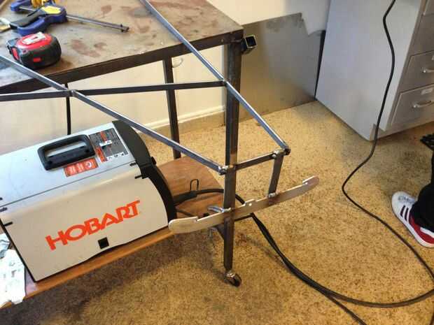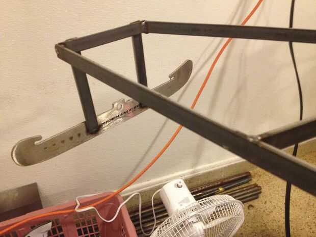 Los patines traseros al marco de montaje fue bastante simple. Aunque usted tiene que asegurarse de que son totalmente recto hacia arriba y hacia abajo y no torcida por lo que utilizamos un nivel y una superficie plana. Mi hermano y yo decidió que quería el marco que tan cerca de la tierra como sea posible pero también montar lo suficientemente alto como para pasar unas cuantas pulgadas de nieve. Nos fuimos con la fabricación de los soportes que sostienen los patines en el marco de 5 pulgadas de alto. Haciendo unas soldaduras marcas y par esta parte de la construcción se terminó en sólo un par de minutos.