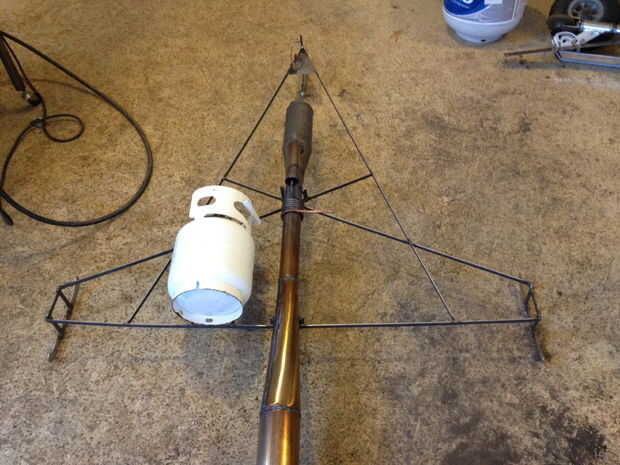 Para el tanque de propano pensamos sería mejor montar directamente a la izquierda del pulsorreactor, dejando unas pocas pulgadas de espacio como el pulsorreactor pone extremadamente caliente. También tuvimos que montar el tanque en su lado contrario que pensamos que podría llegar a pesado superior. Aunque probablemente no era la mejor idea para montar el tanque en su lado debido a probablemente en mal estado con el flujo de la presión y el propano.