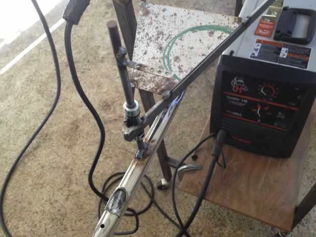 Para el skate de control frontal tomamos una barra de metal de 8 pulgadas, collar de metal, dos tapones de tornillo de bloqueo (no sé el nombre real de ellos) y el skate real. Lo que hicimos fue soldar el collar metálico vertical en el ángulo delantero del bastidor. Entonces nos soldó con autógena la barra metálica para el skate (Asegúrese que es vertical). A continuación uno de los tapones de tornillo de bloqueo fue colocar en la barra para que el frente se sentaba cerca de 5 pulgadas del suelo. Después de que la cerradura superior Tornillo Tapón estaba puesto lugar una vez la barra en el skate fue colocado en el collar metálico vertical. (Ver en las imágenes, que describen lo que lo hizo mucho mejor que pude). Una vez fue un poco engrasado encima de él vuelta perfectamente y no atascarse.