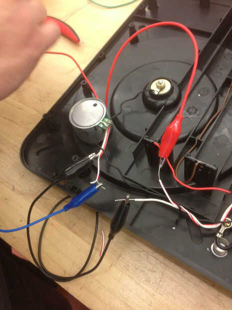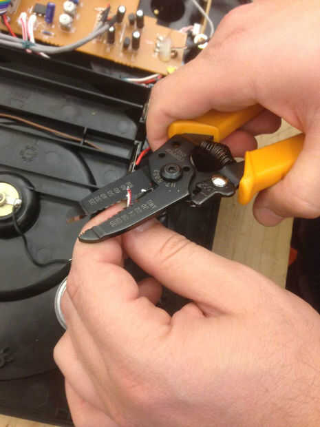 A continuación queremos desconectar la tierra de motor desde el tocadiscos. Es el puro cable blanco conectado al motor. El cable blanco con una raya roja es VCC. Cortar el suelo y cada extremo de la tira.
