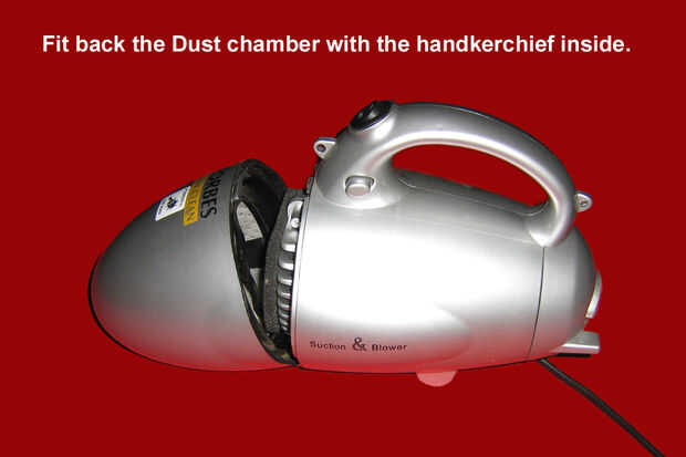 Esto incluye el pañuelo rociado dentro de la cámara de polvo y el filtro de aire.