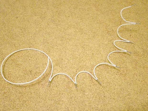 Usted comenzará con la construcción de dieciséis cadenas daisy ocho segmentos de cables, cada uno con 7 corto y 1 alambre largo. Tuerza los extremos junto con la pieza siguiente y la soldadura.