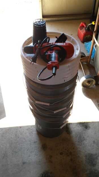 - 5 galones cubo (opaco como sea posible para evitar las algas pero mantenerse alejado negro debido al calor). Encontrar que cubos de Lowe gris funcionan bien para esto
