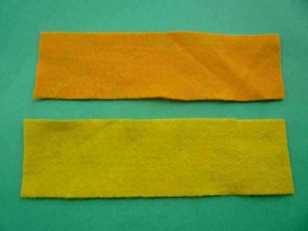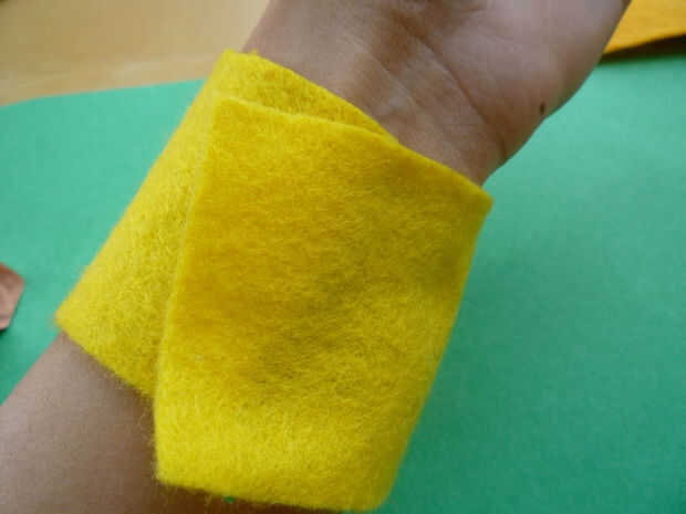 Cortar dos trozos de fieltro de plantilla A. Ajuste su longitud para que sean lo suficiente para envolver alrededor de su muñeca, además de cerca de 1.5" de superposición.