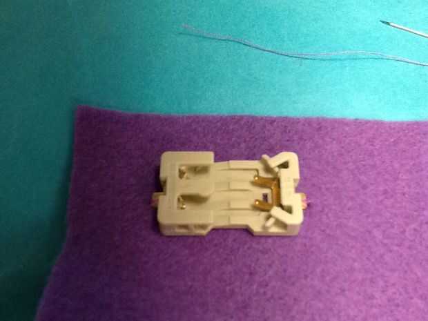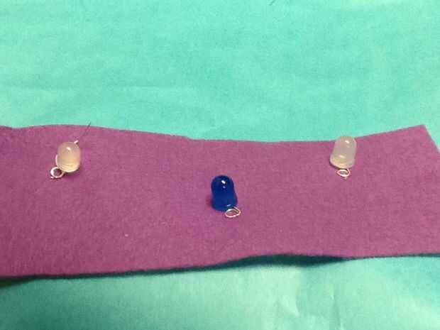 Use su hilo de rosca común para asegurar su LED y soporte de la batería a su tela.