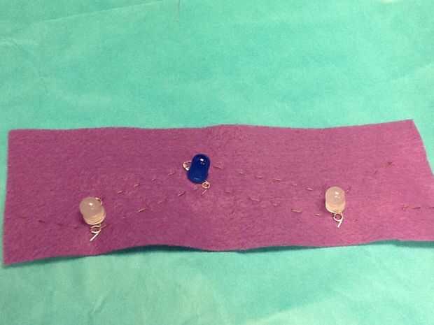 En este ejercicio, usted estará haciendo un hermoso collar de luz o parche con LEDs en una serie paralela. Tomamos una hoja de fieltro blanco y añade flores a él, pero usted puede adornar su collar quieras! Fácilmente podría recurrir a este ejercicio