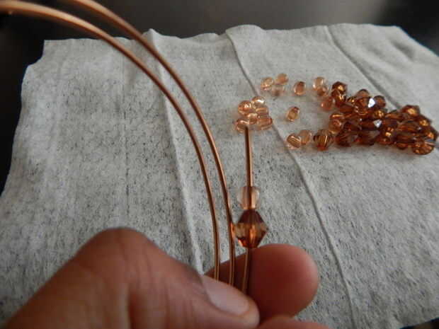 Deslice las bolas más pequeñas en el alambre y añadir según el diseño.