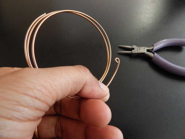 Utilice alicates de punta redonda a un extremo de la curva en forma de bucle.
