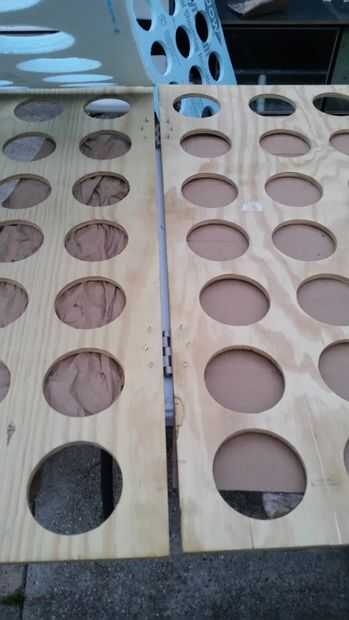 Lo siento no tengo buenas fotos de esto pero su bastante auto explicativo. Sólo organizar los dos tableros e Instale las bisagras. Asegúrese de que haces esto para que la Junta se cierra con la madera encarando. Los lados que la espuma que deba mirar hacia fuera porque la Junta no se pliega hacia arriba con el grueso de la espuma si frente a los lados de la espuma en.