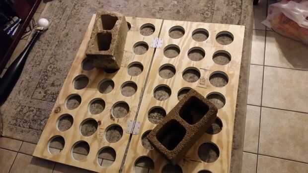 Pusimos nuestro lado de espuma hacia abajo y poner bloques de cemento en él. Lo dejamos durante la noche simplemente porque ya era tarde así que no estoy seguro cuánto tiempo toma para obtener un sólido.