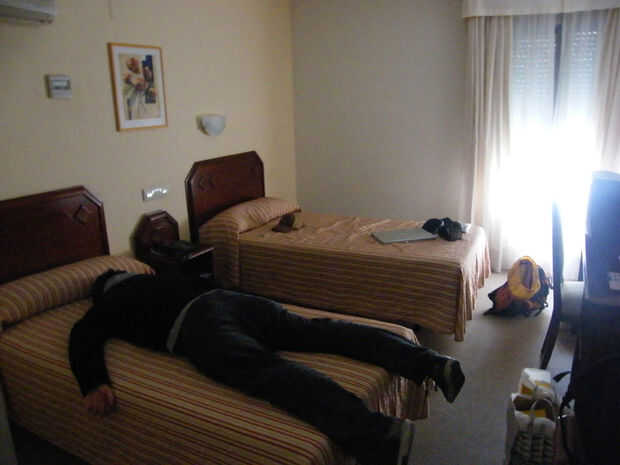 Después de trabajar en Visualizar'09 en Madrid toda la noche, coger un tren a Sevilla en 6:00 y tienen inmediatamente una siesta en su hotel (1 hora)