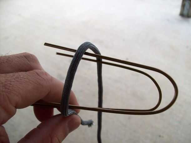 Ahora podemos empezar a iniciar el puño de monos. Comienzo sosteniendo un pedazo de cable como se muestra abajo al empezar a envolver el paracord alrededor de la herramienta que acaba de hacer.