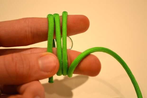 3. Comience envolviendo el paracord 3 veces alrededor de los dedos y el mármol.