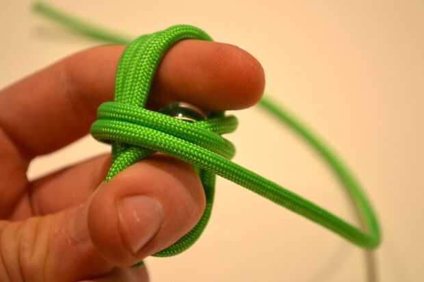 1. bucle final de paracord alrededor de la parte posterior del mármol, más cerca de su dedo indicador.